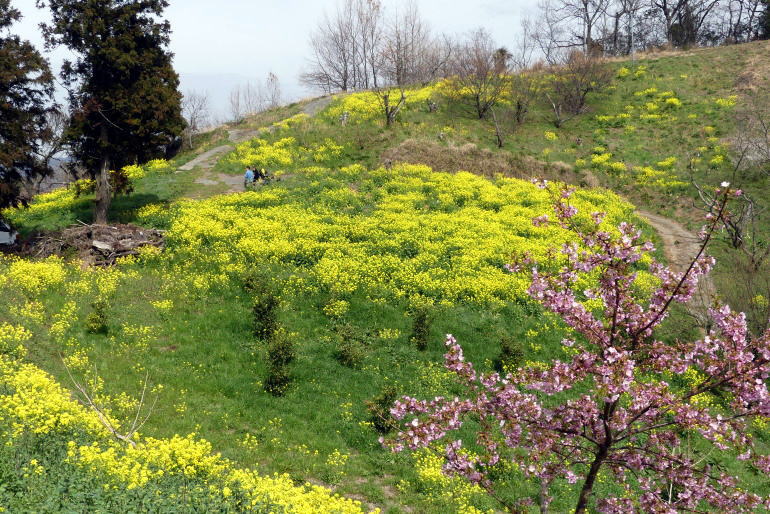 | 左は、昨年2017年3月11日の状態、ほとんど花がありません。右は、今年。 昨年はほとんど菜の花がありません。世話をする人が高齢化などで居なくなったせいだろうと 諦めて帰ったものだった。ところが地元の人に聞てみると、今まで毎年そのまま放置していても 春になると全体がきれいに咲いていた。ところが昨年、突然ダメになった。それで 今年初めて、種まきをしたのだそうだ。“いやち”が原因ではないかとのことだった。 |