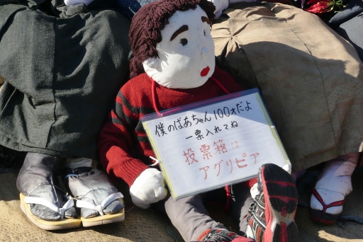 | 歩いていると ときどき かかしさん以外に 出会って ぎょっとする。 |