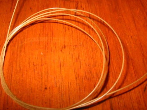 Draw, 2`3 times, sheep-guts through two fingers (thumb & index) soaking in the glue-water