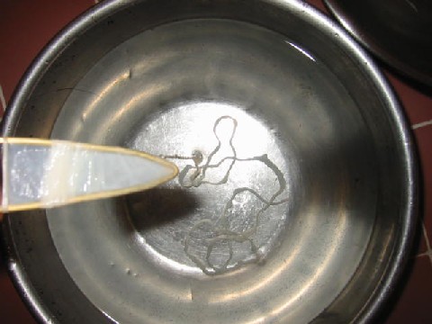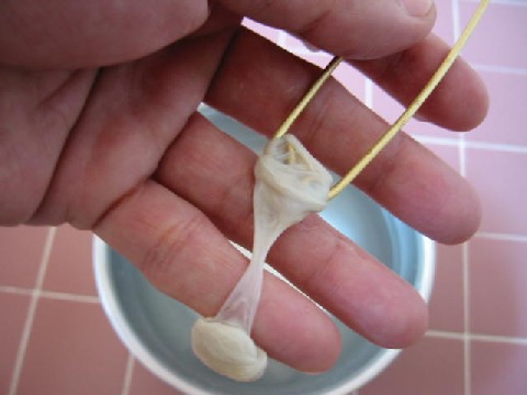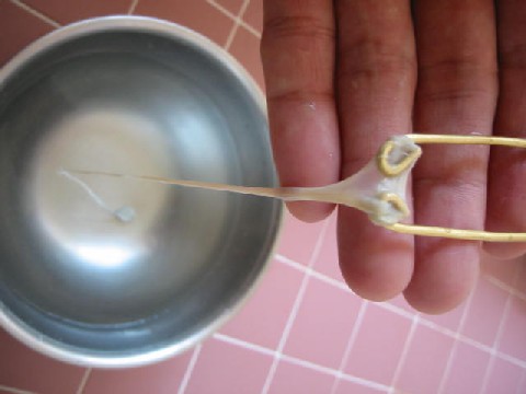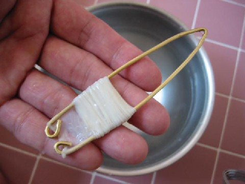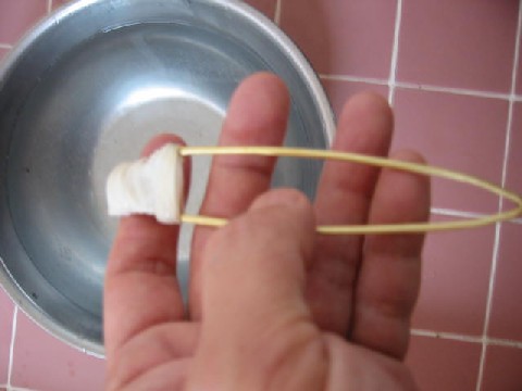 Put the sheep-gut over this tool from the rounded end, keeping it soaked in water as you do it