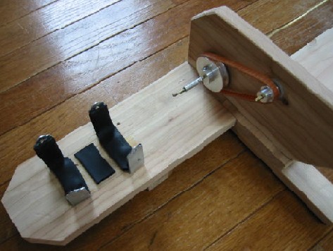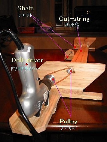 Two sets of L-shaped metal-fittings are combined to hold the drill